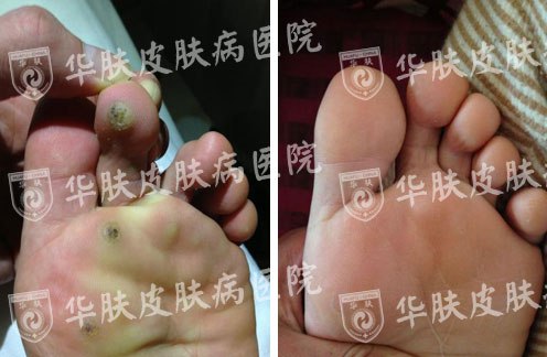 南京华肤医院采用中西医结合疗法治疗鸡眼,严格消毒,见效快,让患者早日摆脱疼痛的烦恼。提供我院就诊的患者治疗对比图让您对此疾病治疗有信心:治疗时间因患者的病情和体制而决定。